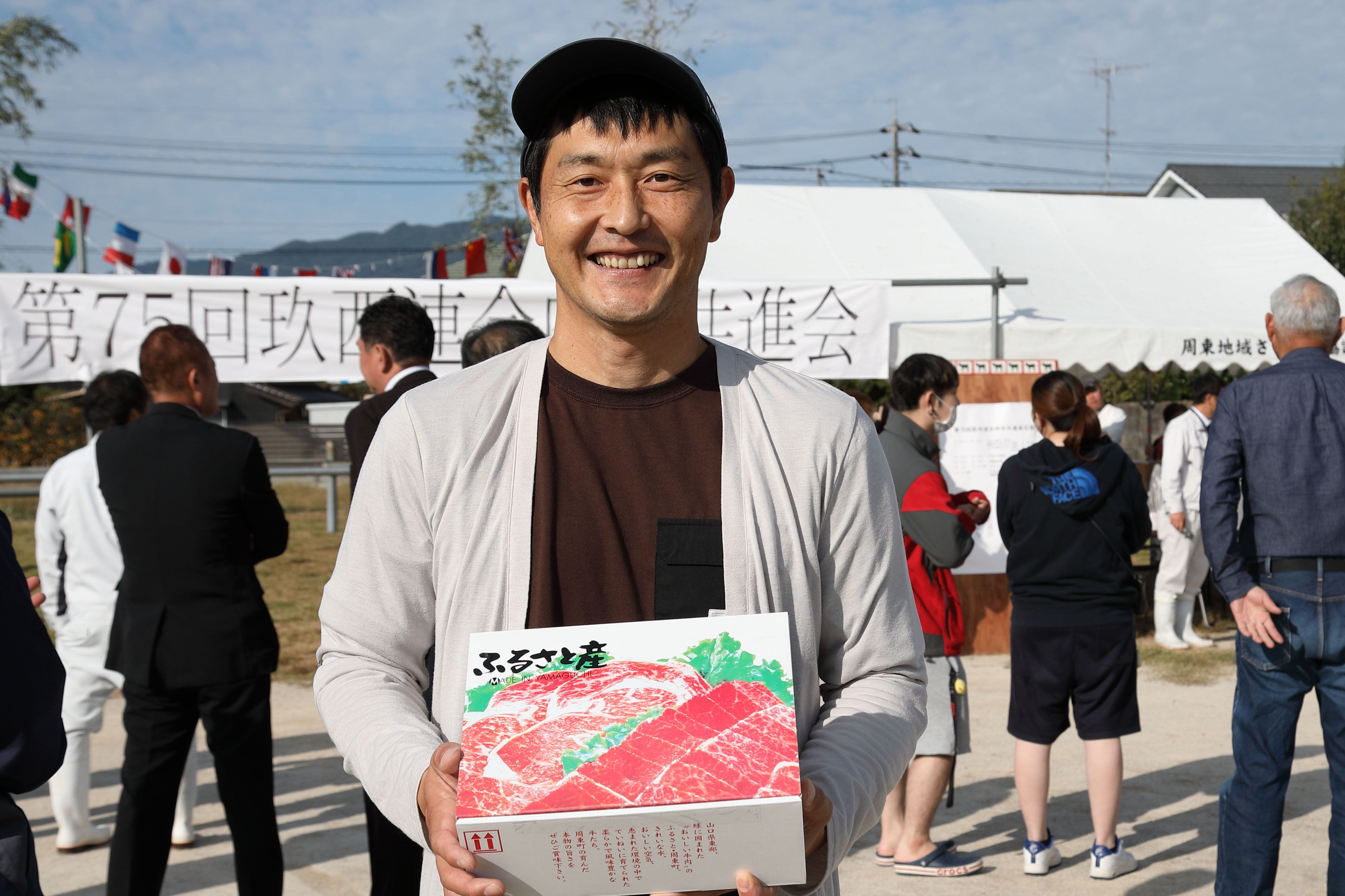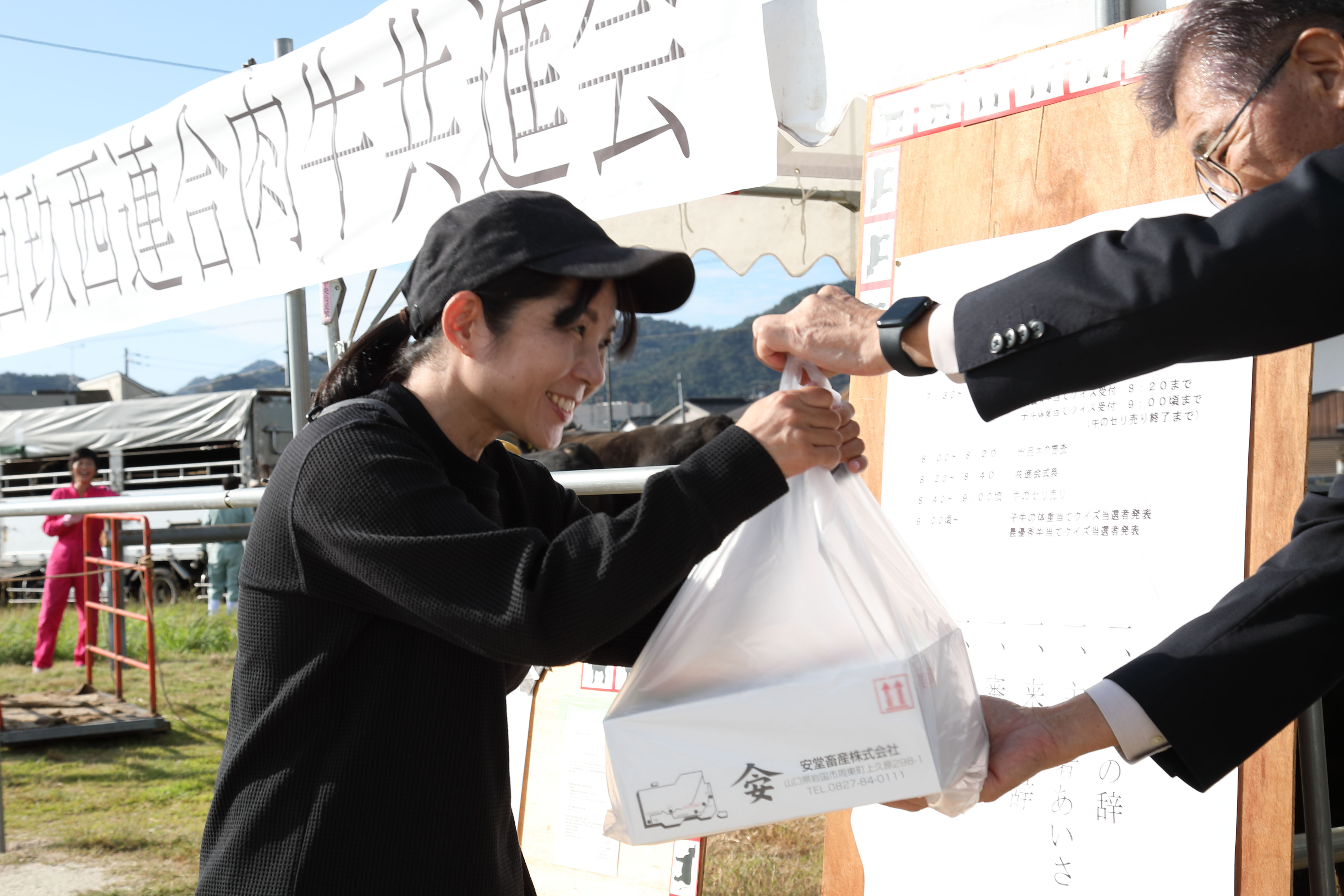 最優秀牛の予測では、多くの正解者があり、抽選により井上さん(周東町在住)が記念品の牛肉を射止めました。
