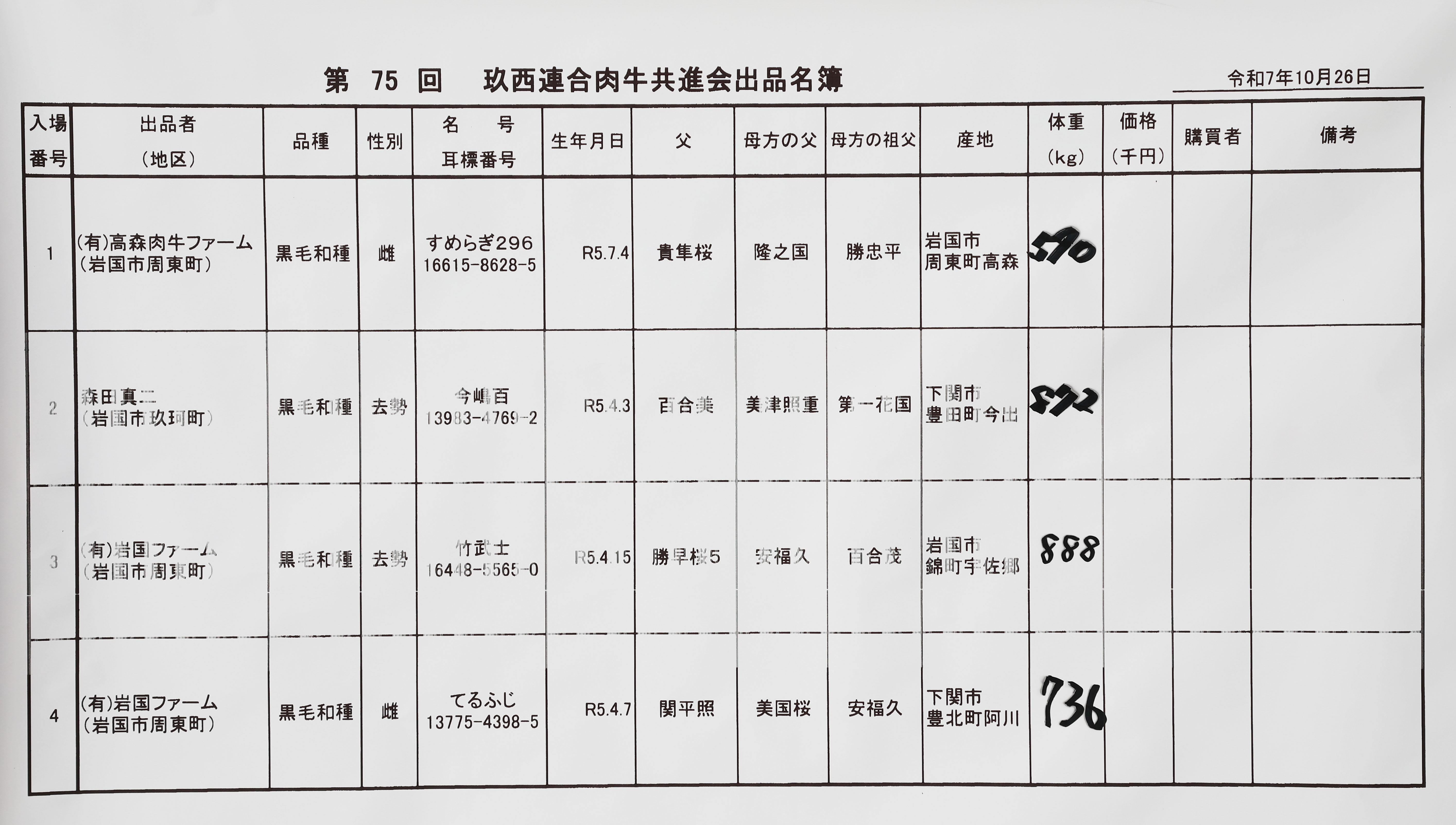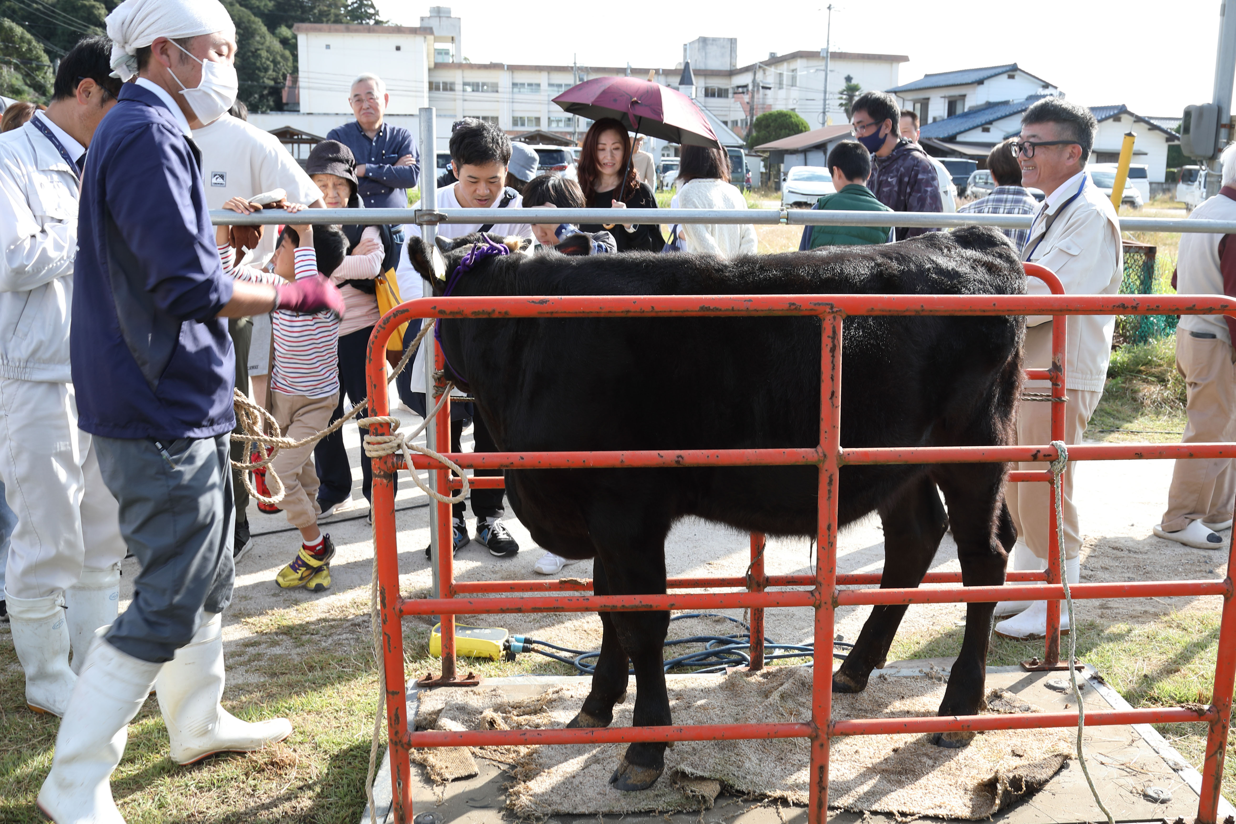 秋の空が広がる早朝、山口県有数の牛肉の産地・岩国市周東町にて、第75回玖西連合共進会が開催されました。共進会とは、地域畜産の発展を目的に優れた産物を品評し、優劣を問う催しのこと。言うならば、玖珂・周東地域で育てた肉牛の一等賞を決める大会です。
